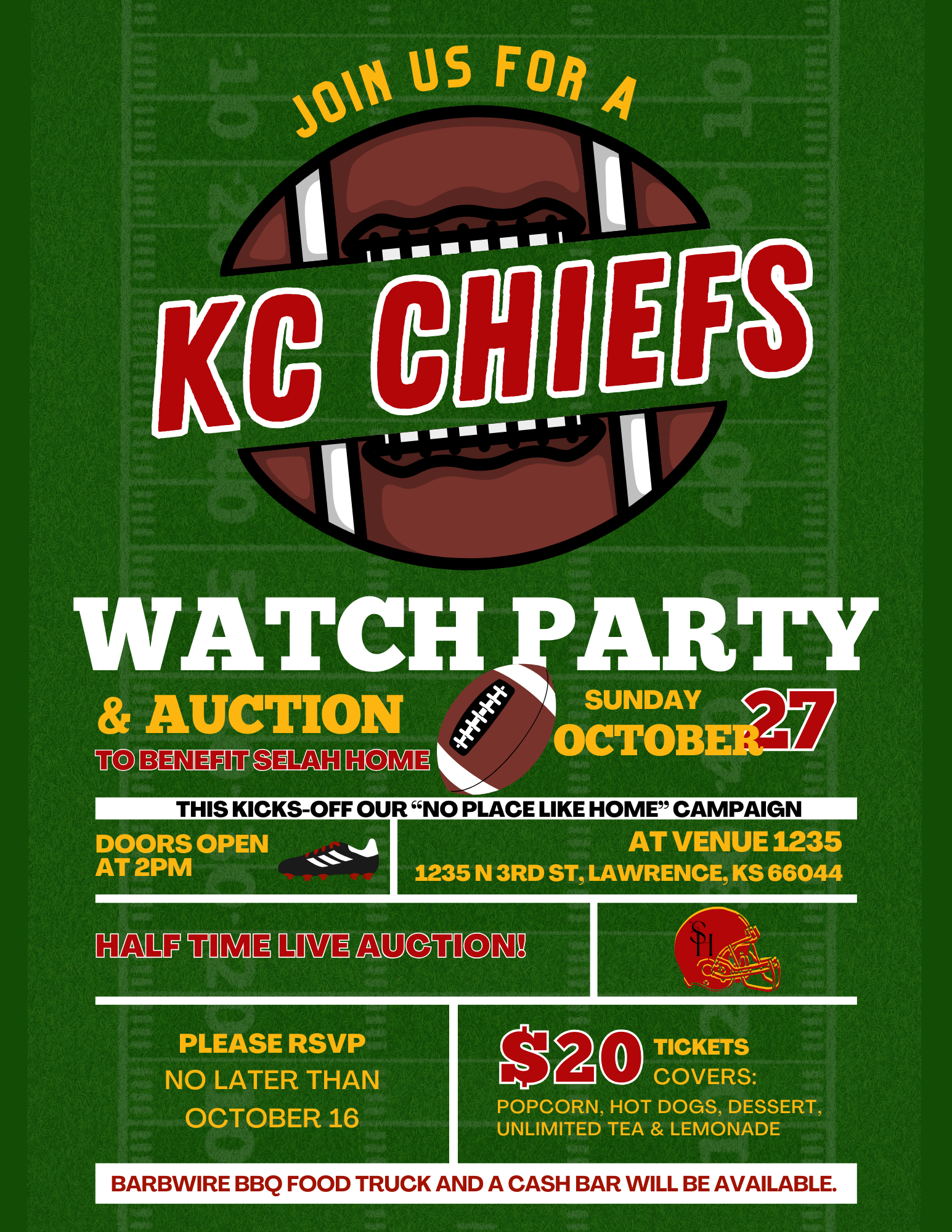 So, huddle up and get ready to run up the score—register now and bid like a true Chiefs champion. Let’s rally the team for a win on and off the field! GO CHIEFS!